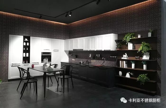 作为和记AG平台娱乐官网 首次对外亮相的新品,维罗妮卡002不锈钢橱柜系列,在此次展会获得了参展者们的广泛关注,其化繁为简的利落线条构造,砂面白与水泥灰的亮深色度碰撞,井然有序的功能区比例布局,科技智能化的细节亮点,加上一侧仿深色木纹的多层开放架,配以厨柜下柜同色系的餐桌椅,俨然就是家居生活的一处厨餐厅。不同于别处的墙面系统与整套橱柜相得益彰,辅以绿植的生机盎然,加之灯光射入的光影调和,构建了一道清新亦高级的风景线,让整个空间看似简单却又充满暖意。